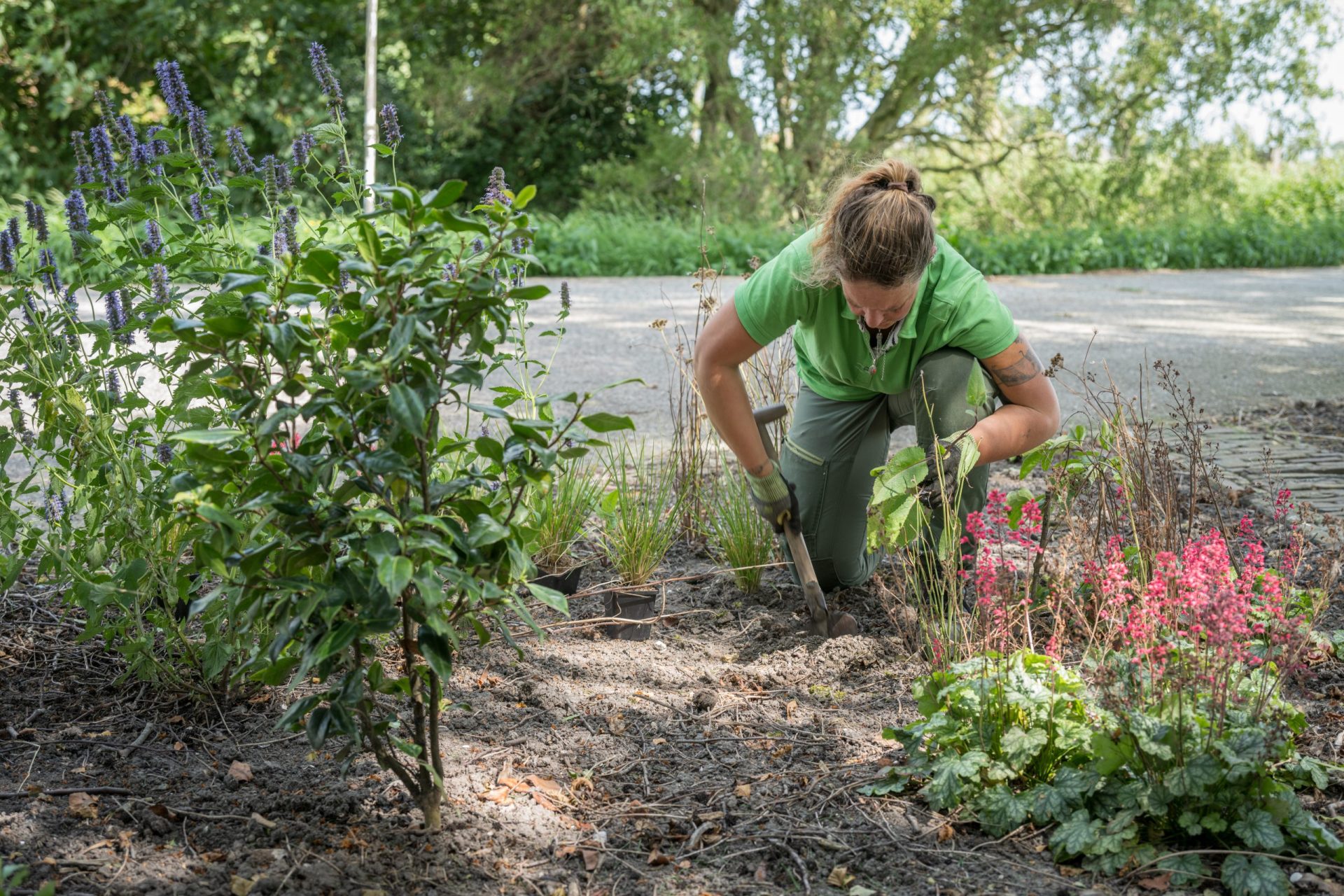 Bij tuinaanleg wordt de vergroeningswens in de praktijk uitgevoerd.